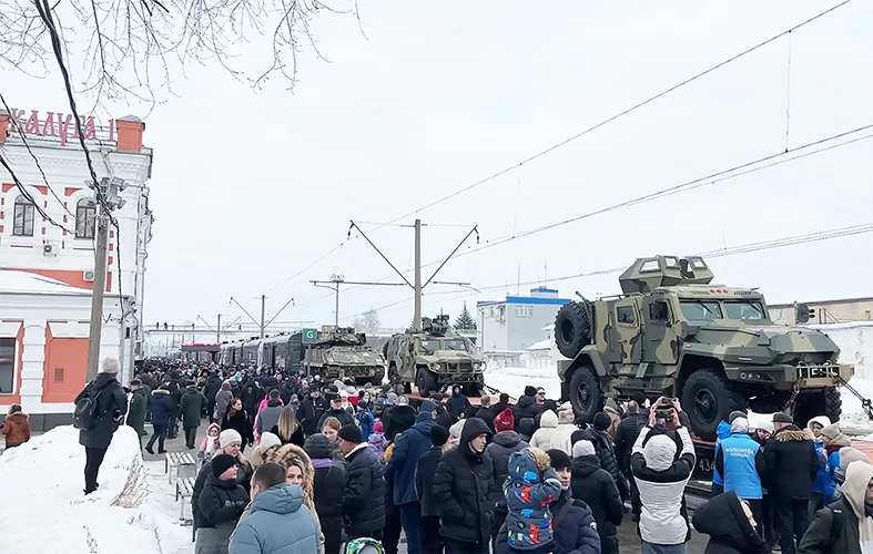Такого наплыва людей станция Калуга-1 не видела даже в горячий дачный сезон – папы и мамы с ребятишками, подростки, молодежь постарше, солидные граждане «серебряного» возраста. В День защитника Отечества здесь встречали необычный состав. «Сила в правде» – проект Министерства обороны РФ. Агитпоезд посвящен истории и нынешнему дню Вооруженных сил России, в его вагонах уникальные экспонаты.