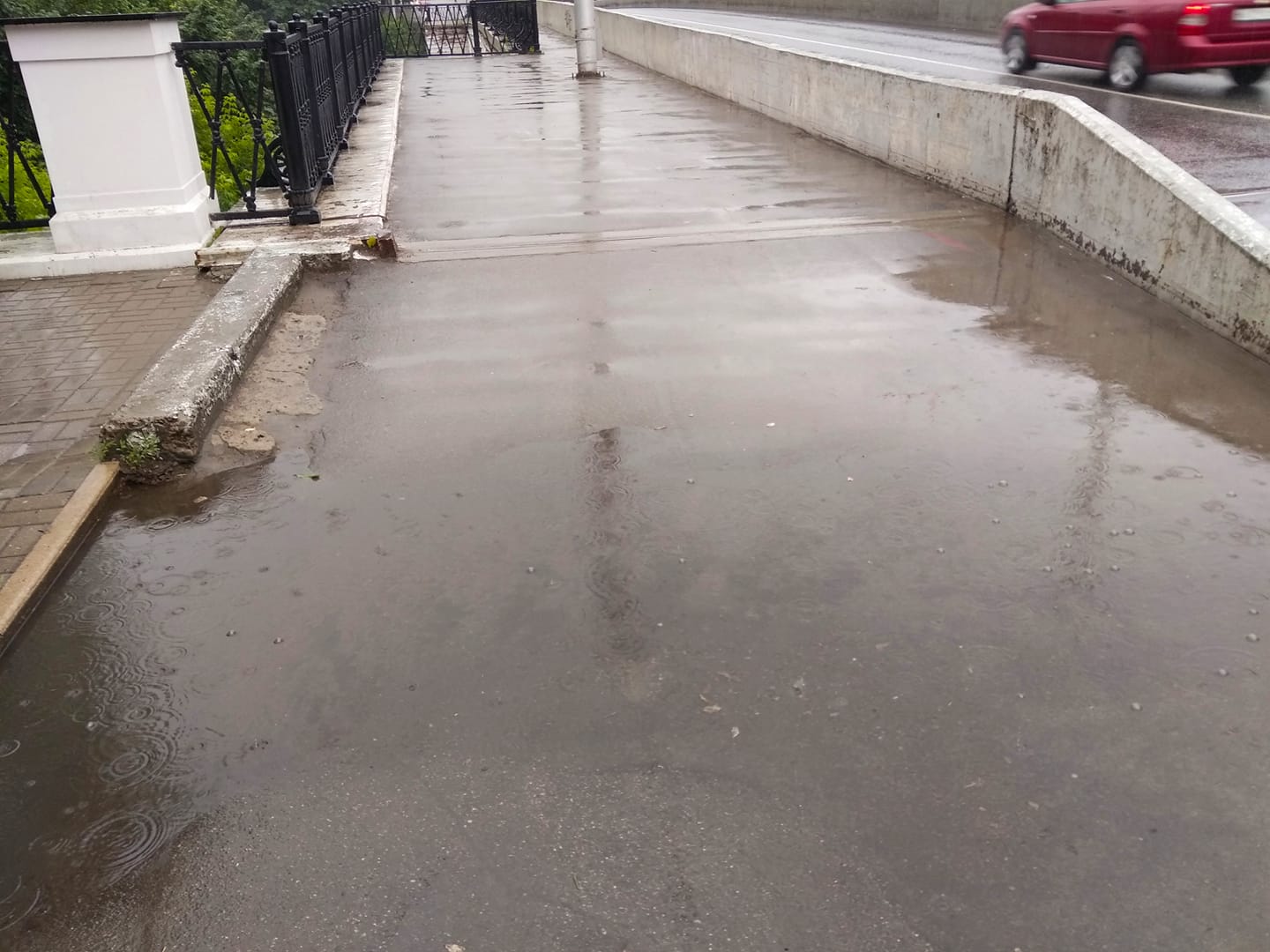 Обратиться к вам меня заставила маленькая проблема. Но она превращается в большую, даже когда идет небольшой дождь, и с ней тогда сталкиваются все, кто идет через Каменный мост в Калуге. Это лужа перед входом на мост со стороны КНИИТМУ. Как свидетельство прилагаю фотографию, где видно, что вода не уходит через решетку ливневки, которая здесь есть, а собирается на асфальте. Это создает большие неудобства для тех, кто проходит по мосту. С одной стороны – проезжая часть, с другой – надо делать зигзаг, чтобы взойти на мост, если не хочешь промочить ноги.Хочу обратить внимание на то, что Каменный мост – уникальный памятник, творение архитектора Никитина. Таких в России больше нет. Его показывают туристам, которые посещают наш город. Но такое отношение к нему огорчает. Я читал, что руководитель области Владислав Шапша следит за критическими замечаниями, которые высказываются жителями в социальных сетях, а ответственные лица на них реагируют. Меня в силу возраста там нет. Но надеюсь, что городские власти или организации, занимающиеся ремонтом тротуаров в Калуге, обратят внимание на данное письмо и приведут это место в порядок.