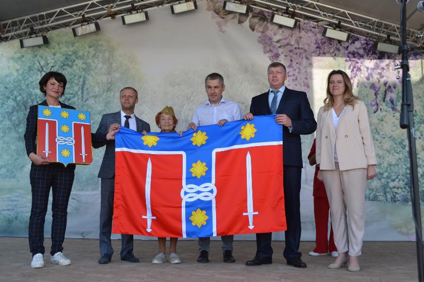 В день поселка Товарково получило собственный герб и флаг. Эти геральдические символы вручили руководителям поселка - главе поселения Наталье Семеновой и главе управы Роману Квятковскому глава администрации Дзержинского района Егор Вирков и местные депутаты.