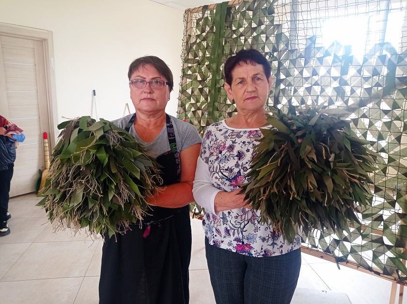 Женщины очень стараются освоить пошив костюмов. Что-то пробуют сделать в домашних условиях на своих машинках. Костюм летний, а июнь подходит к концу. Очень торопятся освоить новое изделие, материал пустить в дело и ребятам помочь.