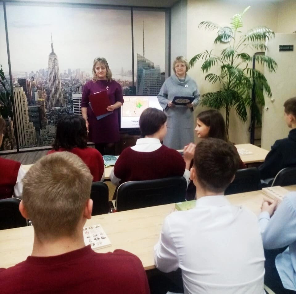 Библиотекари Татьяна Фучко и Надежда Ткачевская познакомили учащихся с диорамой «Великое стояние на Угре» во Владимирском скиту Тихоновой пустыни и памятником Великому князю Московскому Ивану III, установленному на площади Старый торг в Калуге.
