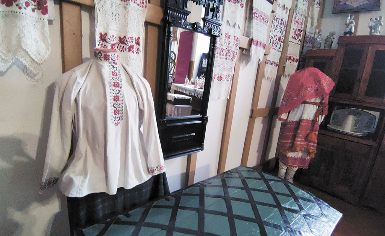 По большому счету с сундука Василисы Федоровны, мамы отца Алексия, все и началось. Откроешь крышку, а там цветные россыпи – вышитые рушники, рубахи, свадебный костюм. Часть жизни, которая от нас теперь далеко-далеко. Немудреный крестьянский быт с прялками, рубелями, ухватами, протяжные песни, поля, рощи, перелески, темный ручей Черный Поток, по нему и получила название родная деревня батюшки. А окрест Зеленая Птица, Круглая Заводь, Осиновая Избушка, Сосновка, Лазыкино… Жиздринское полесье.
