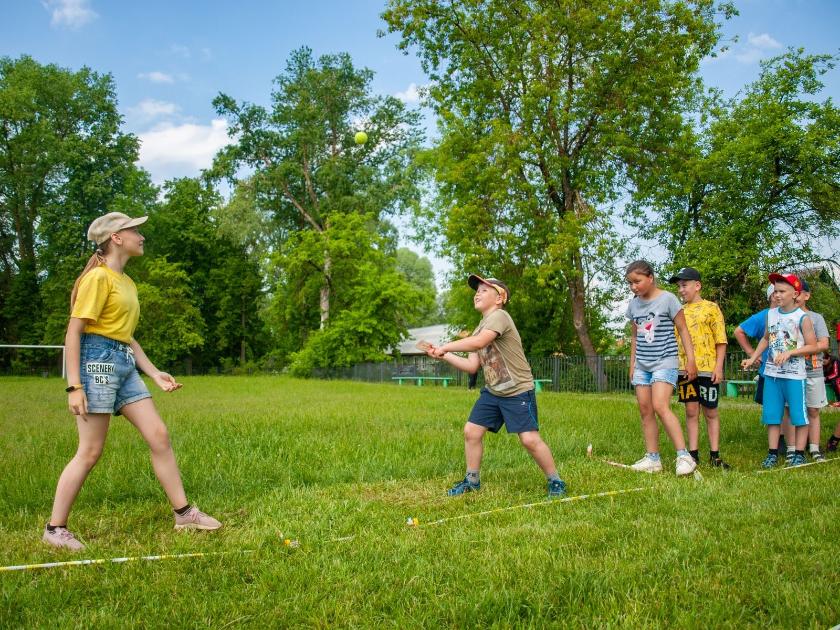 Помимо творческих способностей школьники активно развивали свои силу, ловкость и выносливость, участвуя в подвижных играх, эстафетах и играя в русскую лапту. Эта игра очень динамичная и по зрелищности ничуть не уступает американскому бейсболу. В этом году удалось даже провести соревновательный турнир с командой ребят из летнего оздоровительного лагеря школы № 1.
