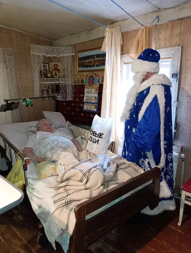 Стараемся создать праздничную атмосферу. Наши волонтеры наряжаются в костюмы Деда Мороза и Снегурочки. Важно отметить, что мы не ограничиваемся только вручением подарка. Стараемся пообщаться с подопечными, уделить им время. Где-то откликаемся на предложение попить чаю, где-то просто соглашаемся посидеть и поговорить с одинокими людьми.