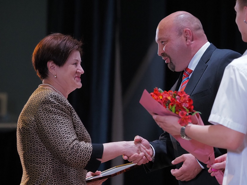 Поздравление медицинским работникам прозвучало и от председателя Законодательного Собрания региона Геннадия Новосельцева, который рассказал, что предпринимают законодатели области для того, чтобы закрепить медицинские кадры, сделать так, чтобы они хотели жить и работать в нашей области.Церемонию поздравления и чествования медиков продолжила заместитель губернатора региона, руководитель администрации губернатора Карина Башкатова: