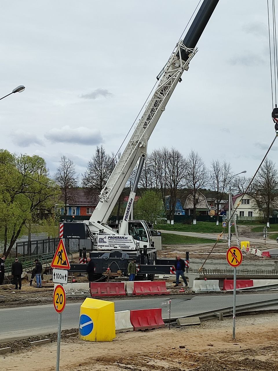 В настоящее время все коммуникации перенесены, установлены сваи опор, три ростверка, смонтированы пять стоек и ригель промежуточной опоры, забетонированы открылки, идет подготовка к монтажу балок пролетного строения.
