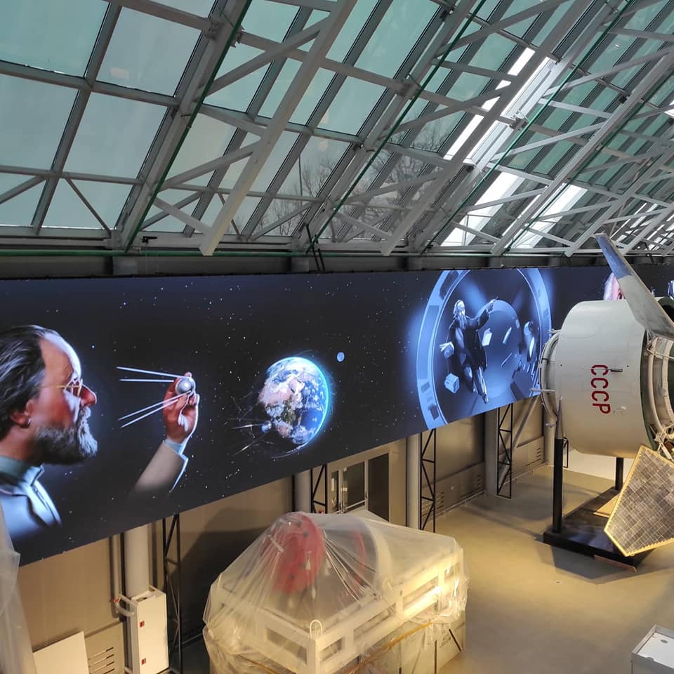 - Артефакты, элементы навигации, системы витрин, мультимедийные комплексы и многое другое уверенно заполняют новый корпус. В главном зале 2-й очереди музея идет тестирование уникального 80-метрового бесшовного мультимедийного экрана.