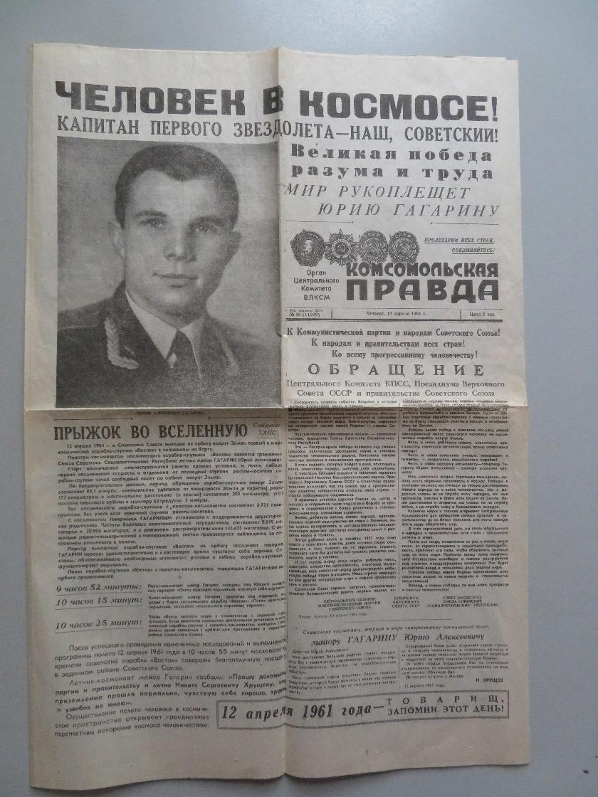 Петр Спиридонович не только в подробностях помнит день первого полета человека в космос, но и бережно хранит на протяжении 60 лет газету «Комсомольская правда» от 13 апреля 1961 года. Там напечатано сообщение ТАСС о том, что в Советском Союзе выведен на орбиту вокруг Земли первый в мире космический корабль-спутник «Восток» с человеком на борту.