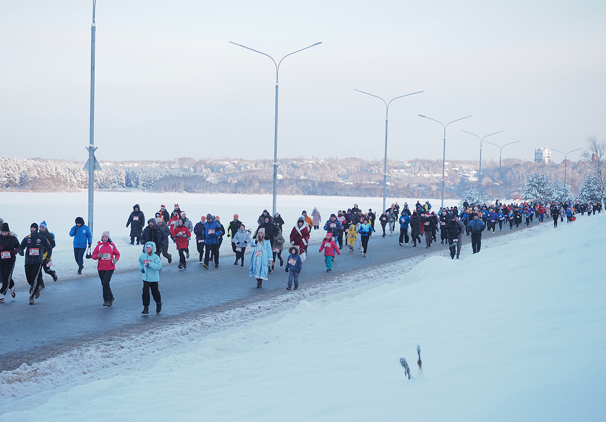 Мороз минус 12 градусов не стал помехой. На старт вышли целыми семьями, с детьми, а дистанцию 2026 метров многие преодолевали в маскарадных костюмах: по набережной бежали Деды Морозы, Снегурочки и сказочные персонажи. В числе участников были и представители нашей редакции – Надежда Дудинская и Алексей Горюнов. Из-за большого числа участников в этом году стартовали группами, с небольшим интервалом. На финише всех ждали памятные медали, горячий чай и каша.