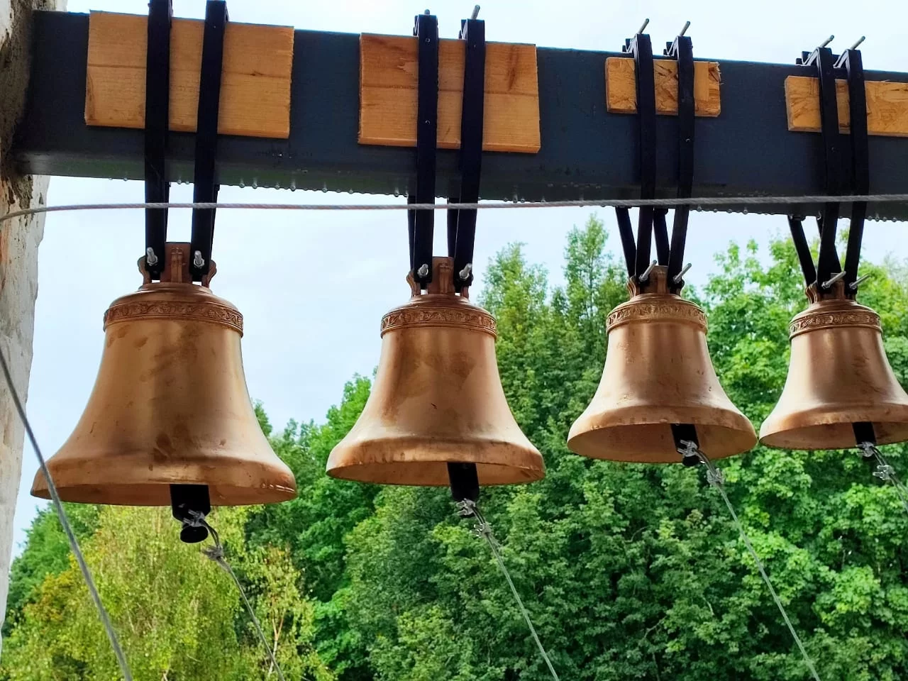 Остальные восемь – без надписей. Колокола поют благодаря системе электронного звонаря.