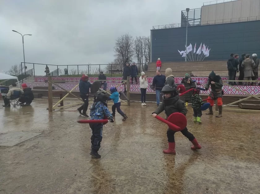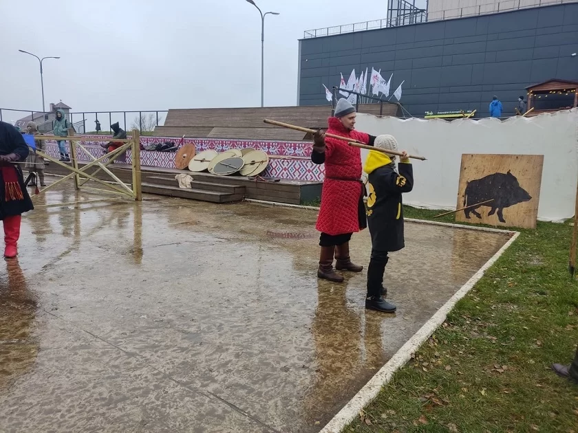 Несмотря на хмурую и дождливую погоду, на обучение мечевому бою, стрельбе из лука и метанию копья выстраивались длинные очереди из посетителей.