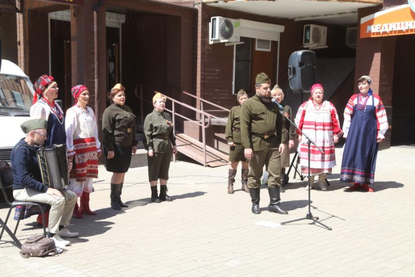 Концертная программа открылась минутой молчания в память о павших в той великой войне. После чего народный самодеятельный коллектив, ансамбль «Калужская тальянка» исполнил для жителей микрорайона песни военных лет.