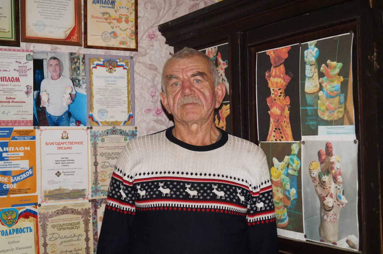 Александр бережно хранит воспоминания о прошлом, в том числе и в материальном виде. На серванте стоят свистульки, сделанные матерью. На стенах - семейные награды за мастерство. Среди них и снимок Александра Бубнёва с керамическим самоваром. Тогда он считал, что первым додумался до этого изделия, но оказалось, Аграфена Трифонова сделала самовар гораздо раньше.