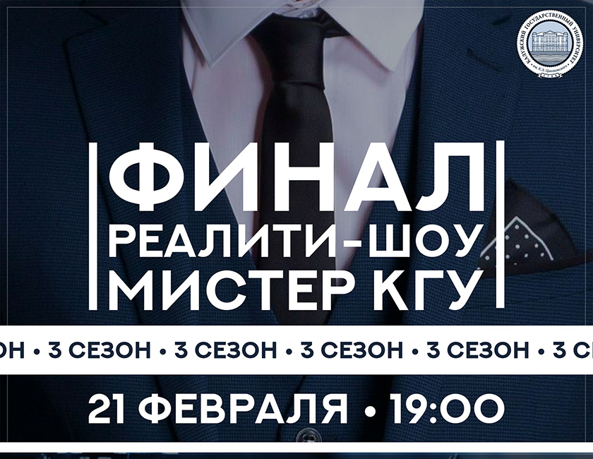 Теперь ребятам предстоит выдержать финал. Студенты КГУ встретятся в решающем этапе реалити-шоу «Мистер КГУ», который будет состоять из творческого выступления, интерактива с ведущим и показа дефиле. Зрителей ждёт концертная программа, а также награждение победителей от партнеров и спонсоров.