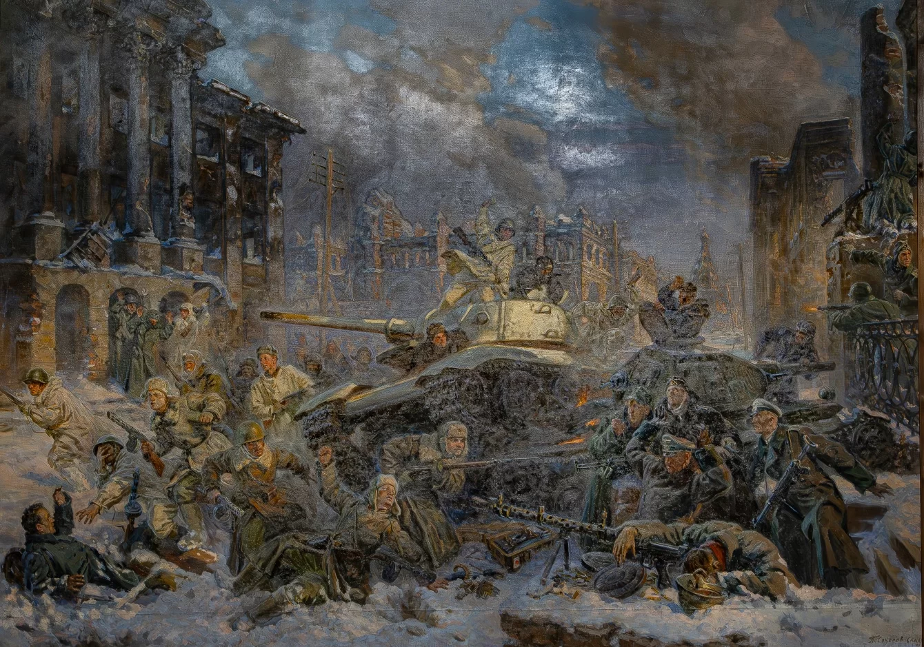 – Художник побывал у нас в начале 1942 года сразу после освобождения города, делал наброски в местах боев. После войны он создал это эпическое полотно, с помощью которого мы теперь можем погрузиться в те события. Мы благодарны, что в юбилейную дату оно будет находиться на Калужской земле. Это значит, картину могут увидеть калужане и гости города, – отметил Павел СУСЛОВ.
