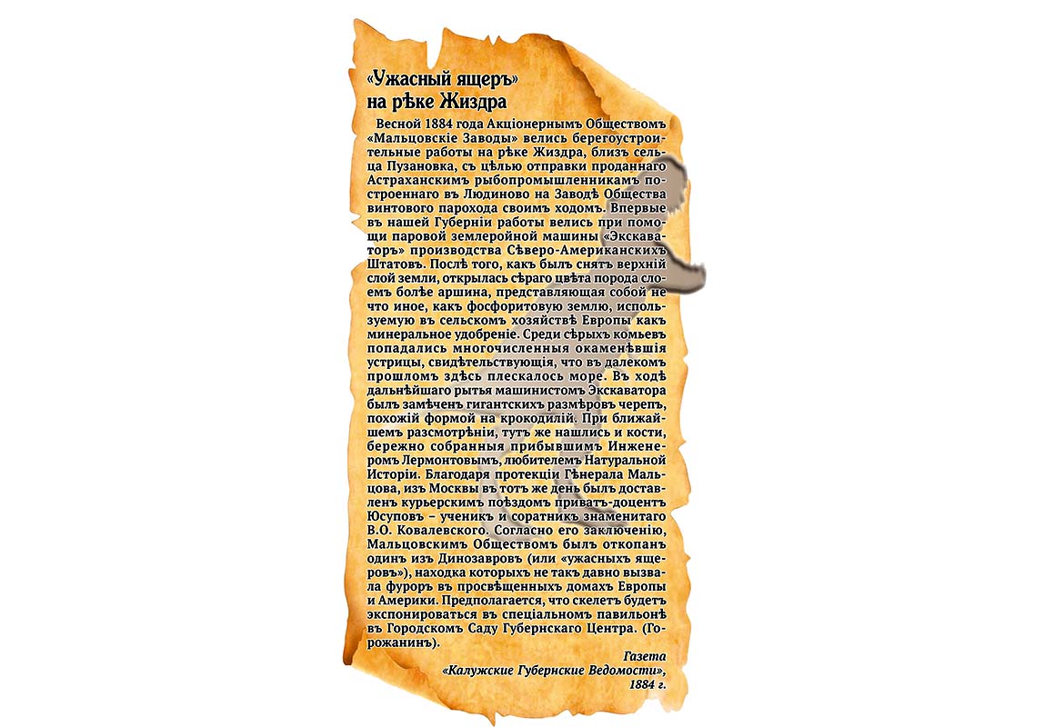 Паровые экскаваторы американского конструктора Отиса в середине ХIХ века действительно появились и работали в России, и с учетом любви Мальцова к техническим новинкам нет невозможного в их использовании на Жиздре. Не выдуман и В.О. Ковалевский – почти забытый ныне первый российский ученый-палеонтолог. Находили у нас и останки динозавров…