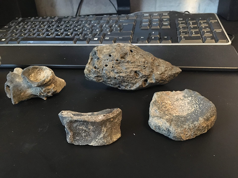 До начала 1990-х годов колоссальные карьеры с тяжелыми экскаваторами работали близ станции Козелкино, недалеко от границы Калужской и Брянской областей. Здесь же любили бывать и коллекционеры окаменелостей. Они находили обитавшие на дне древней реки окаменевшие губки и куски окаменевшего дерева, где четко видны сучки и следы насекомых-древоточцев! А на фото, сделанном московским любителем палеонтологии Александром Фетисовым, – и позвонки динозавров оттуда же! Снова увы – и этот карьер уже зарос… В настоящее время в области и рядом нет больших действующих карьеров, вскрывающих меловые отложения. Однако их можно встретить на небольших карьерчиках местного значения, просто на дне глубоких оврагов. На фото – один из зубов ламноидных акул, найденных в подобном месте Анной Чурючковой – любознательным краеведом из Сухиничского района. Специалисты датировали их Сеноманским ярусом Мелового периода (93 – 100 млн лет назад)! В масштабах страны находка нередкая, но для нашей области – первая, насколько знаю.