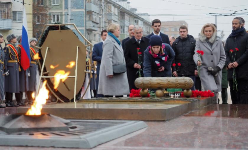В церемонии участвовали заместитель губернатора – руководитель представительства Калужской области при Правительстве Российской Федерации Владимир Потёмкин, Чрезвычайный и Полномочный Посол Германии в России Геза Андреас фон Гейр, бывший Президент Федеративной Республики Германии Кристиан Вульф, председатель областного парламента Виктор Бабурин, Городской Голова Калуги Дмитрий Разумовский, председатель Российско-Германской конференция Кристоф Герцог фон Ольденбург, представители немецкой делегации и молодежь двух стран.