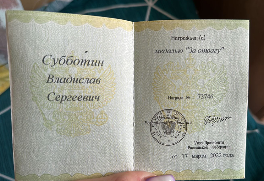 Еще одну медаль – «Доблесть и отвага» - боец получил от Следственного комитета России.