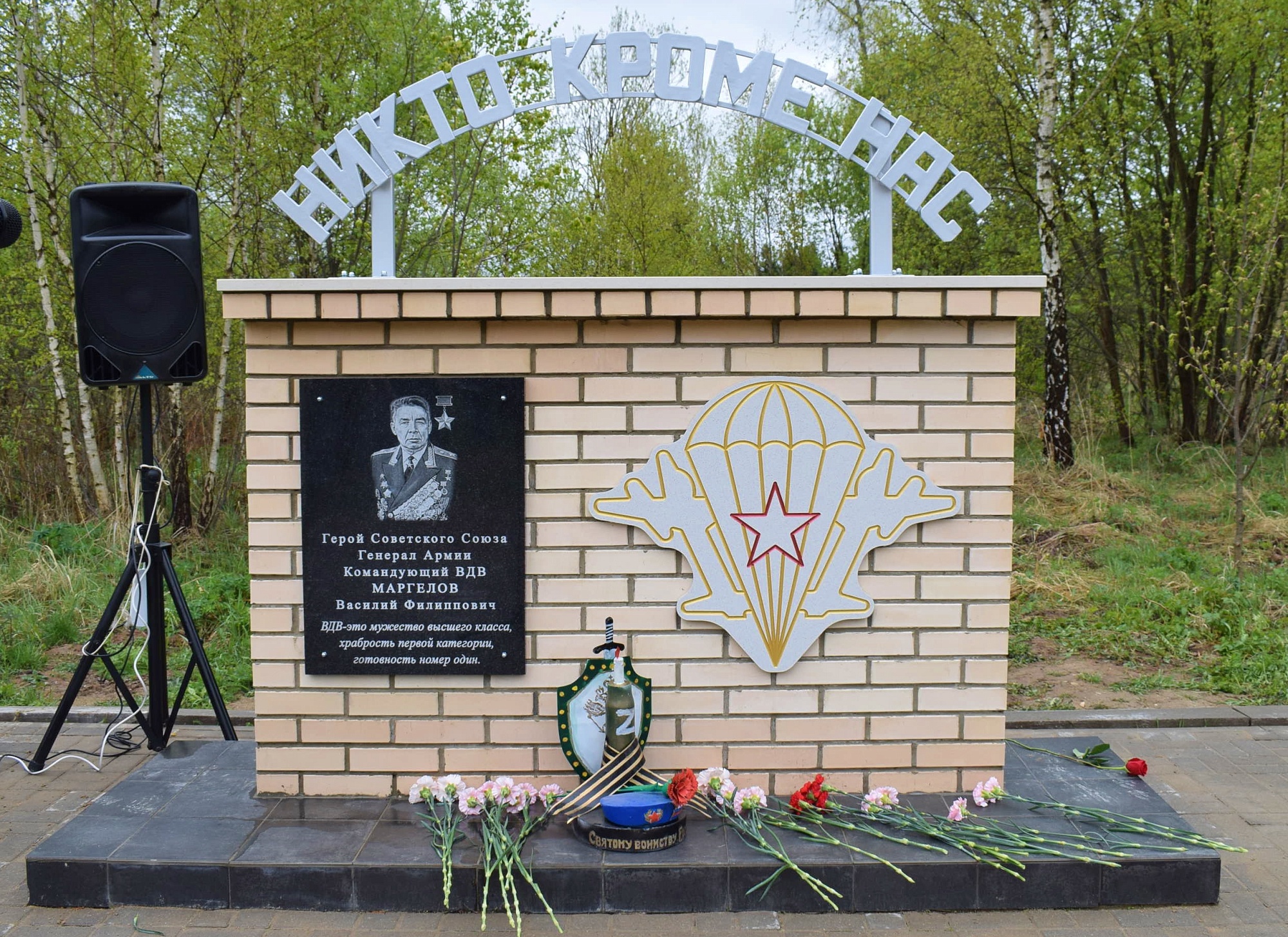 Новый памятный знак «Десантникам всех времён и народов» установлен в районе городской школы № 1. Он выполнен в виде плиты, на которой расположена мемориальная доска основателю и командующему Воздушно-десантными войсками, Герою Советского Союза генералу армии Василию Маргелову. Венчает знак девиз воздушно-десантных войск «Никто, кроме нас».