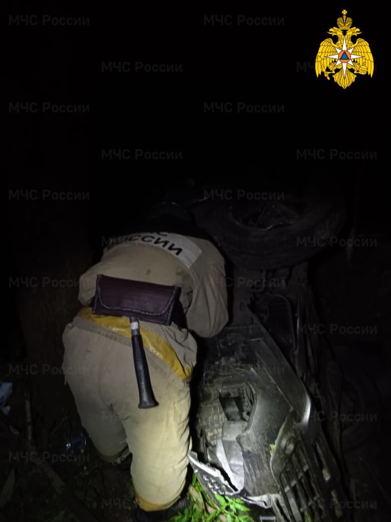 В ночь на понедельник, 1 августа, в деревне Селиверстово Тарусского района произошло ДТП. Легковой автомобиль «Киа» врезался в препятствие и перевернулся.