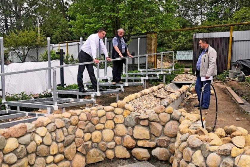 На ведущем к лугу и реке склоне создают целый комплекс сооружений. Планируется выложить камнем желоб с каскадом водопадов, поставить чашу мини-водоёма с рыбками и водяное колесо. В купель вода будет поступать только с закрытого пространства святого источника, где сейчас, по словам строителей, уже заложено серьёзное техническое оборудование.