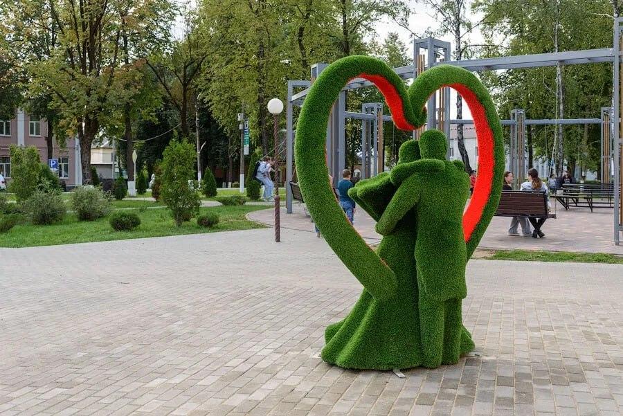 В ходе реализации проекта специалисты провели работы по обустройству брусчатки, высадили деревья и кустарники, а также установили оригинальные топиарные фигуры, которые добавят индивидуальности новому пространству.