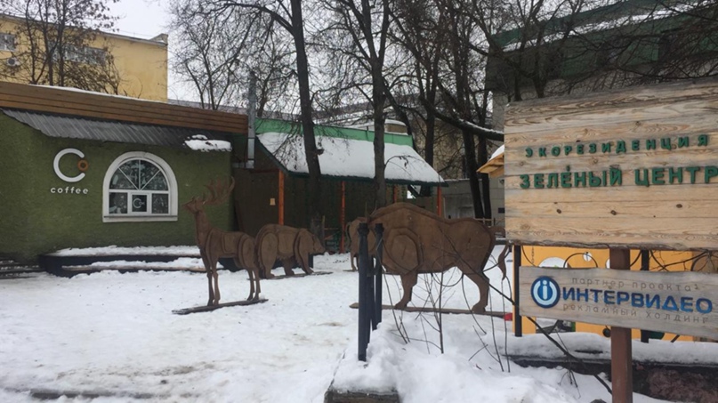 Около кофейни «Зеленого центра» притаился сказочный олень и белочки, а грозный бык теперь встречает гостей экорезиденции.