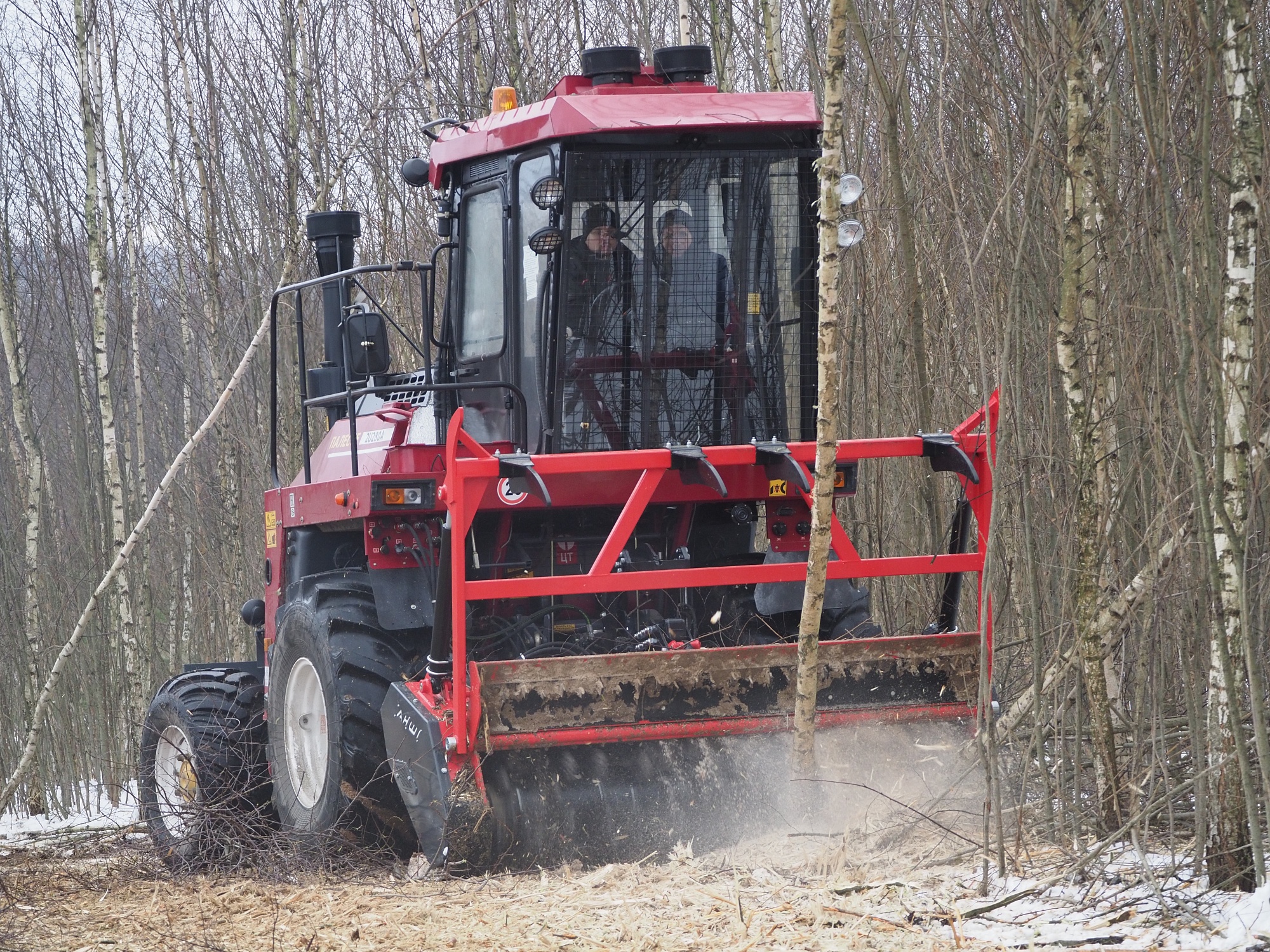 В отличие от остальной новой техники для МТС работу двух мульчеров «Полесье» в присутствии представителей Гомельского завода сельхозмашиностроения выехали смотреть в ближайший пригород, в район деревни Галкино, где эта техника на залежных землях сельхозназначения валила заросли молодого леса и измельчала его в щепу. Причём щепа на очищенных от растительности землях послужит в качестве органического удобрения. По словам производителей, мульчеры «Полесье» могут валить деревья до 40 сантиметров в диаметре и очищать от зарослей площадь до 4 гектаров в сутки. Такого потрясающего эффекта удаётся добиться за счёт мульчерной фрезы Prinoth - оборудования, предназначенного для измельчения древесины, пней и кустарника на корню. Основная задача мульчера – расчистка залежных земель сельхозназначения от древесно-кустарниковой растительности. Данный мульчер в МТС будет агрегатироваться с полноприводным универсальным энергосредством (машиной) «Полесье», оснащенным лесной защитой. Мощное навесное устройство универсальной машины «Полесье» даёт возможность легко и быстро, не теряя времени при работе, поднимать и опускать навесное оборудование при разворотах на краю поля и при переезде на другой участок.По мнению директора Калужской МТС Леонида Иванова, применение такой техники значительно расширит возможности калужских механизаторов по возврату в оборот земель сельхозназначения.