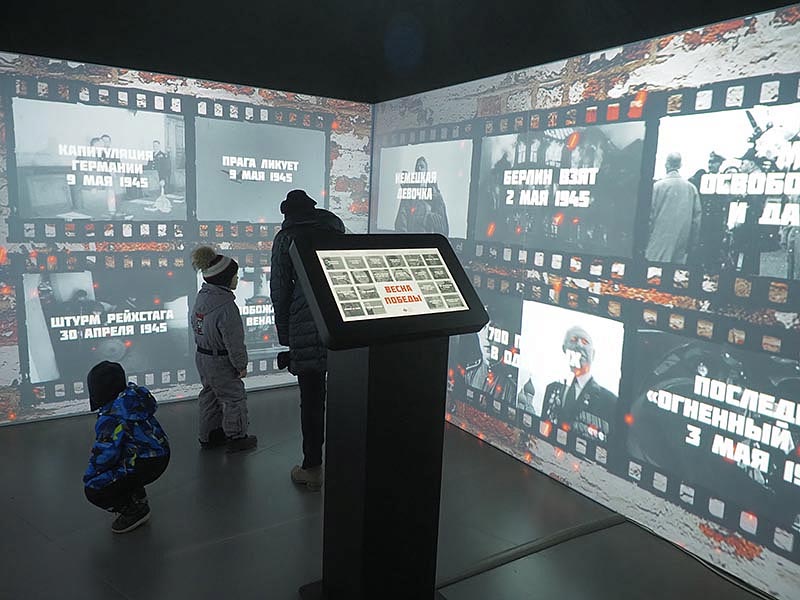 Экспозиция включает несколько интерактивных стендов, объединенных по темам: «О них должен знать каждый», «Битва за Москву», «Награда нашла героя», «Чудесное спасение», «Награжден не был» и «Массовый героизм». А завершает этот своеобразный визуальный рассказ диорама «Весна Победы».Особенно впечатляет раздел «О них должен знать каждый», где с помощью современных технологий «оживлены» фотопортреты Зои Космодемьянской, Георгия Жукова, Дмитрия Карбышева и других героев войны. Благодаря этому зритель видит не страницу учебника или бронзовый бюст, а человека.