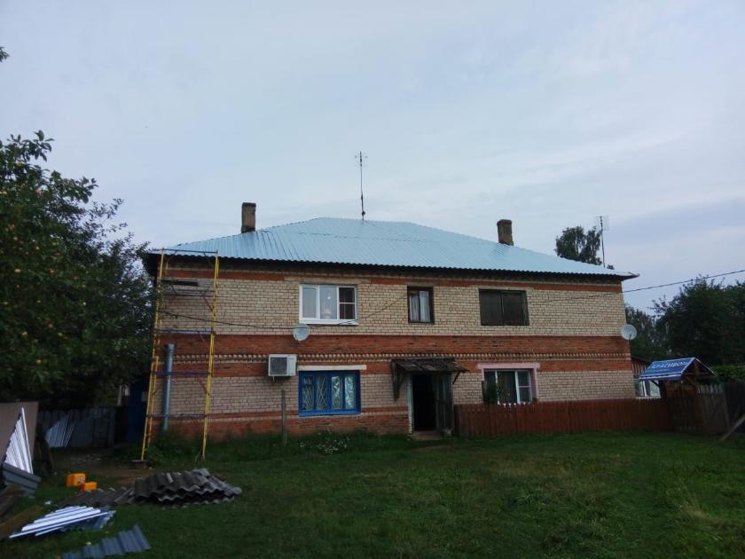 Первой новую современную крышу сделали в доме № 6 на улице Мира – старая находилась в удручающем состоянии. Неоднократно при сильном ветре с нее слетал шифер. В прошлом году его частично заменили, обновили конек, но это не привело к желаемому результату. Постоянная капель с потолка продолжала досаждать людям. И вот настало время серьезного ремонта. Средства на обновление кровли были выделены из бюджета района, так как четыре из восьми квартир дома являются собственностью муниципалитета. А владельцы остальных добросовестно платят взносы в Фонд капитального ремонта.