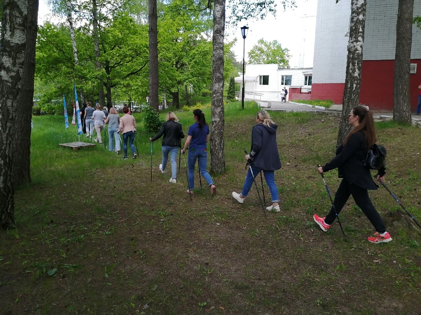 Занятия начались с лекций доктора и тренера, потом от теории перешли к практике у одного из корпусов больницы, а закрепили полученные знания в лесочке у больницы.