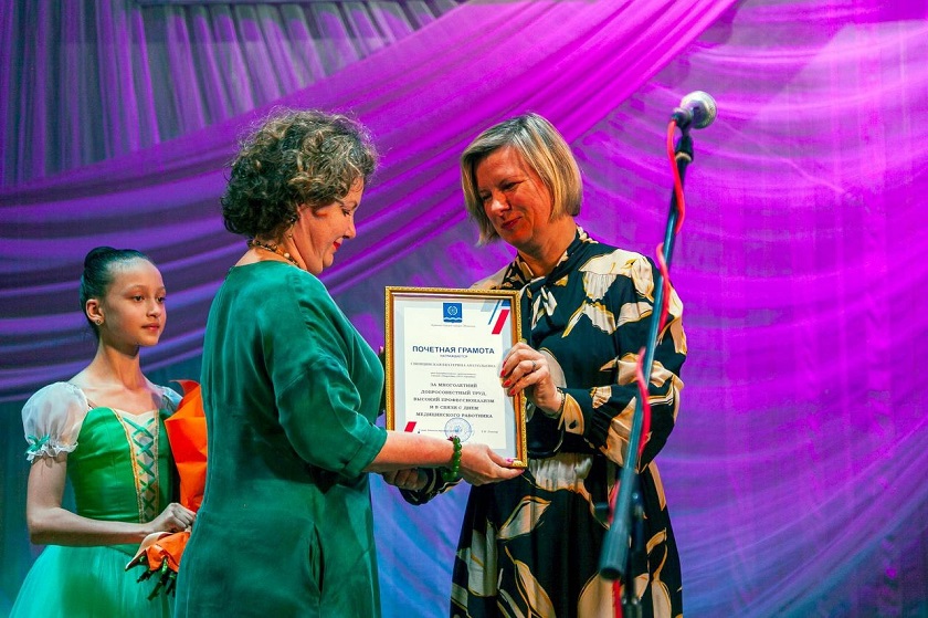 «Желаю вам удовлетворения от своей работы, новых достижений в разных областях медицины, благодарных пациентов, тепла и понимания в кругу семьи и в коллективах! Не переставайте нас удивлять, возвращайте нас к жизни, сохраняйте в душе любовь и возможность дарить себя другим людям», - сказала Татьяна Леонова.