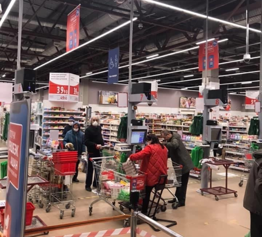 Как было отмечено, в настоящее время торговые площади торгового центра простаивает, бутики и салоны закрыты, все огорожено сигнальной лентой. Работает только продуктовый гипермаркет, салоны связи, аптеки, которым согласно постановления Правительства Калужской области разрешено осуществлять торговую деятельность. Все продавцы соблюдают санитарные требования, работают в медицинских масках. Посетителей практически нет, только несколько человек приобретают продукты питания.
