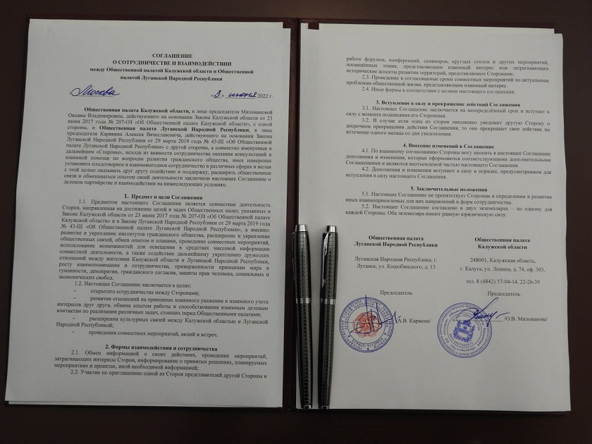 Несомненно, между нами будут заключены и другие соглашения, в том числе и в хозяйственно-экономической сфере. Но старт этим взаимоотношениям дали институты гражданского общества Калужской области и Луганской народной республики»,