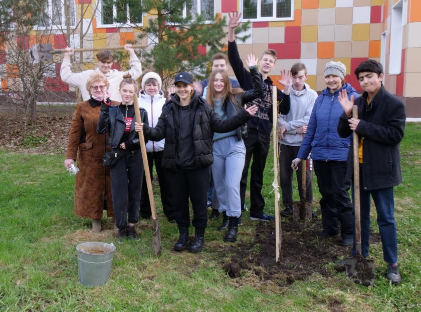 Чтобы оставить о себе добрую память и хорошие воспоминания, старшеклассники решили устроить на школьной территории сад. Директор школы Ольга Рякова приобрела 12 саженцев – 8 яблонь и 4 груши. Мальчики копали ямы, девочки сажали в них деревца.