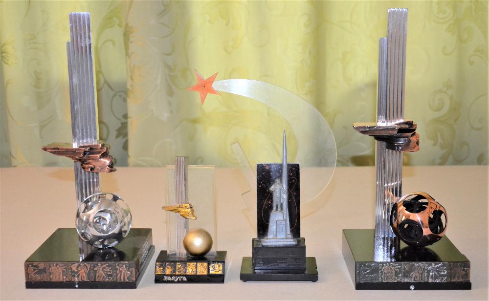 Интересны копии монумента, посвященного 600-летию Калуги. Как известно, он был заложен в 1971 году, а построен и открыт только шесть лет спустя. Довольно быстро «шарик» стал одним из главных символов Калуги и занял свое заслуженное место в сувенирной продукции. Копии памятника изготовлялись в двух размерах. И если малые монументы поступали в свободную продажу, то большие купить было нельзя. Их делали только на заказ для руководителей и заслуженных работников предприятия, а также почетных гостей города.