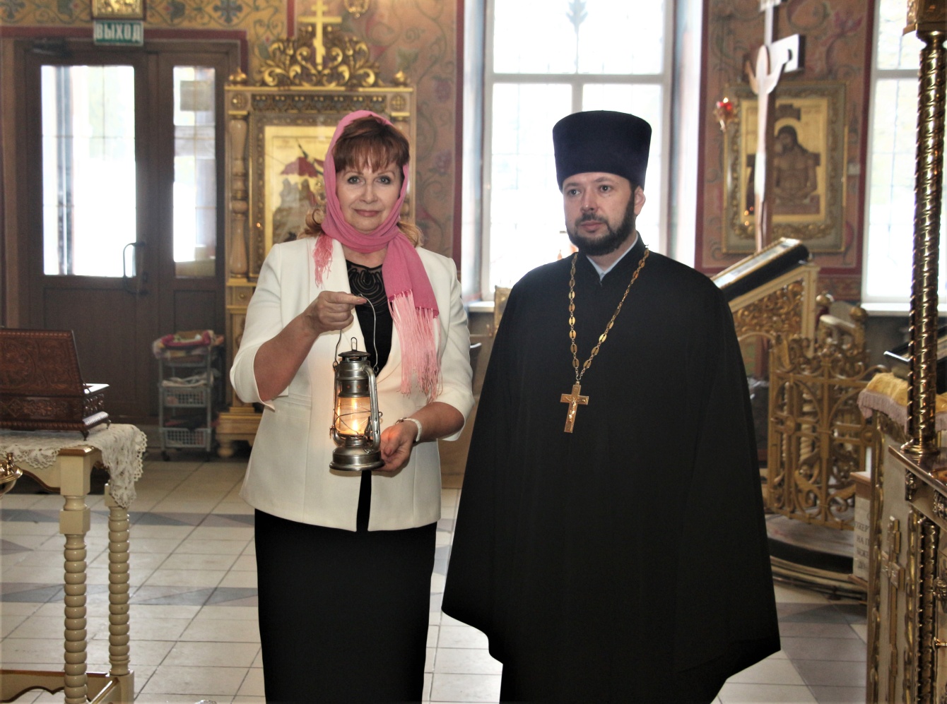 В понедельник, 12 февраля, настоятель калужского Никитского собора протоиерей Алексий зажег и передал лампаду Всероссийского семейного очага заведующей отделом ЗАГС администрации города Обнинска Лидии Синецкиной. Вечером этого дня огонь станет частью мероприятия в честь открытия Года семьи в Обнинске.
