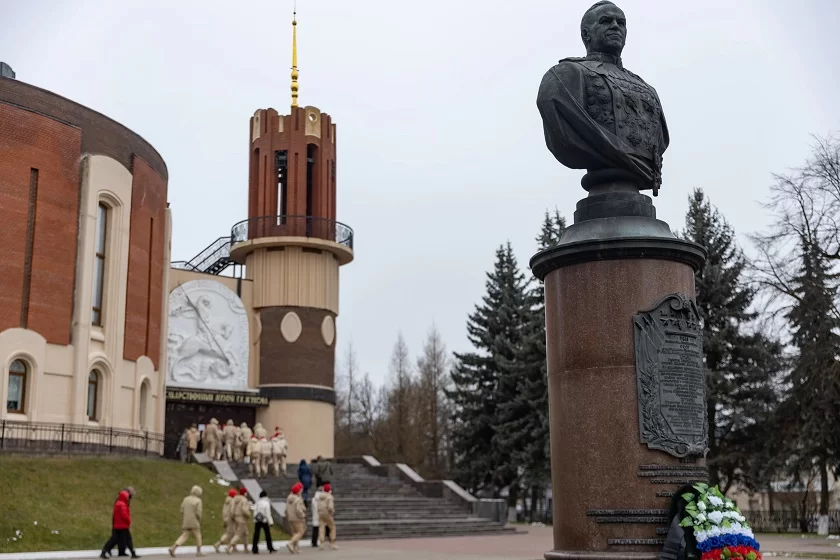 Фасад школы №45 также выбран не случайно — в 2020 году учебному учреждению было присвоено имя Маршала Советского Союза, который родился в Калужской области.