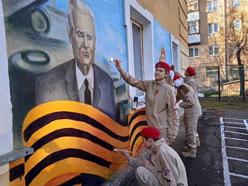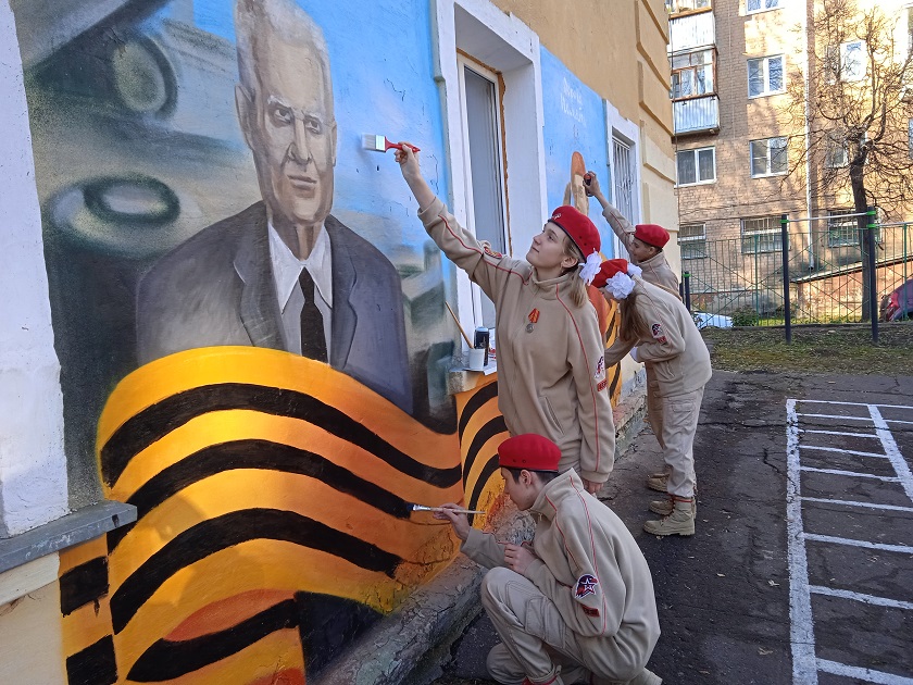 Украшение стен Центра в необычном художественном стиле проходит в рамках всероссийского проекта «Граффити Победы».