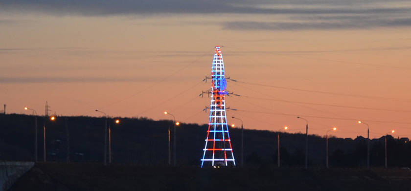 Благодаря более трем тысячам светодиодам энергообъект становится светящимся в темноте. К празднику подсветку стилизовали в виде российского триколора и георгиевской ленты – символа памяти и воинской славы.