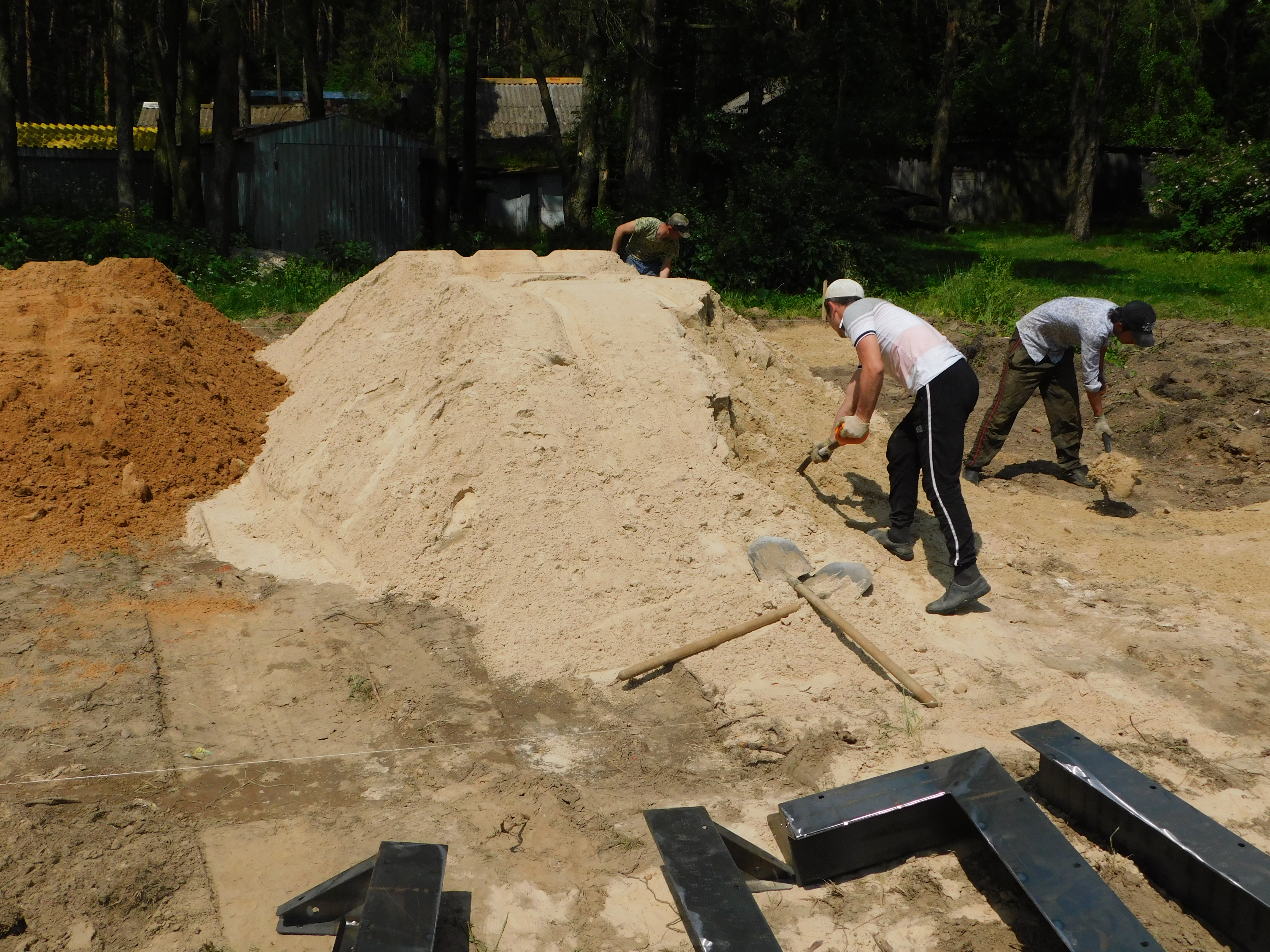 Модульные конструкции монтируют на фундаментной плите, под которую нужно подготовить основательную песчаную подушку. Этим в Редькине как раз занималась бригада Константина Шелкова. Под плиту, на заливку которой уйдет около 15 кубометров бетона, рабочим нужно уложить и утрамбовать 25 кубов песка. До начала бетонных работ делают «закладные» для подключения будущего ФАПа к электросетям, водопроводу и канализации. Стены новостройки будут собраны из сэндвич-панелей. Снаружи они покрыты металлом с порошковой покраской, внутри них – пеноплекс. Собираются конструкции быстро, служат долго.