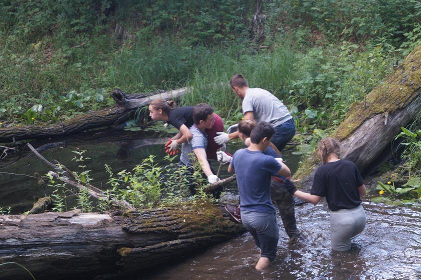 День второй начался с краеведческой викторины. Делегаты команд ответили на вопросы по истории думиничской земли.А потом был «Беркут» - сначала ребята преодолели несколько веревочных этапов, самым сложным из которых стала «Бабочка», а в завершение отправились в болотце. Чтобы победить эту «ароматную» фишку думиничских турслетов, нужен крепкий боевой и командный дух. В зарослях недалеко от основного маршрута - неглубокая, по пояс будет, большая мутная лужа со скользким дном. Посередине ее - толстый ствол упавшего дерева. Вот это болото команде и нужно преодолеть. Причем, по легенде, еще и перенести раненого, не уронив его в грязную воду. Кто это видел и слышал, знает: очень эмоциональный этап соревнований!