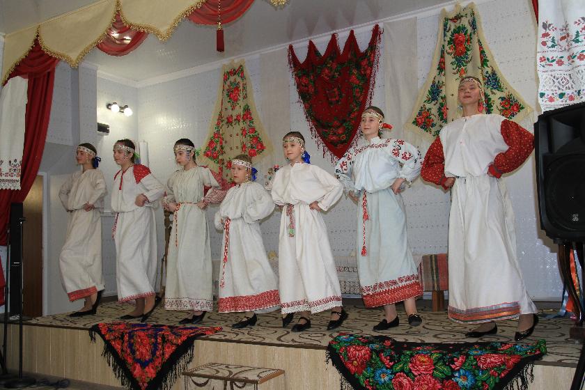 На празднично украшенной сцене воскресной школы участники фольклорного коллектива «Славяна» рассказали об истории этого фольклорного праздника, его значении для наших предков. Исполняли песни с плясками, играли, водили хороводы.