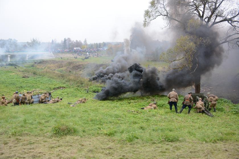 Организаторы сумели передать атмосферу войны. А комментатор объяснял зрителям, что происходит на поле боя. Посмотреть реконструкцию пришли тысячи человек.