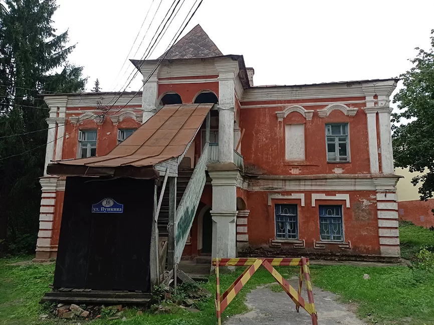 - Деревянный дом Толмачёвых (построен в 1814 году) не так давно передан в пользование «Военфильму». Но не видно, чтобы за зданием и даже территорией ухаживали и трепетно сохраняли.