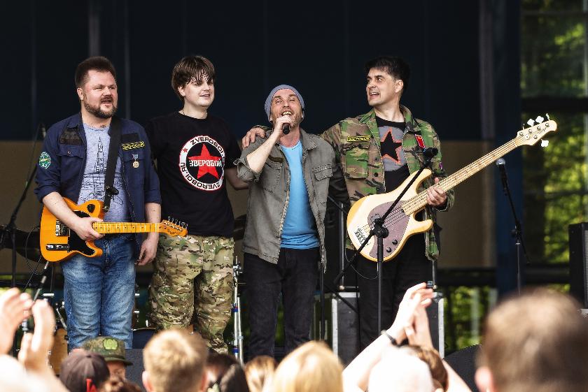 В сквере районного Дома культуры для гостей фестиваля выступили группа «Зверобой», творческий коллектив «Поющая застава» и коллектив Думиничского РДК.