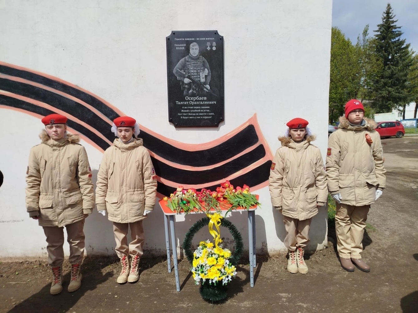 В селе Ильинское открыли мемориальную доску выпускнику Ильинской школы, участнику спецоперации Талгату Осербаеву, погибшему при исполнении воинского долга в июне прошлого года. За самоотверженность и героизм боец удостоен государственной награды — ордена Мужества.