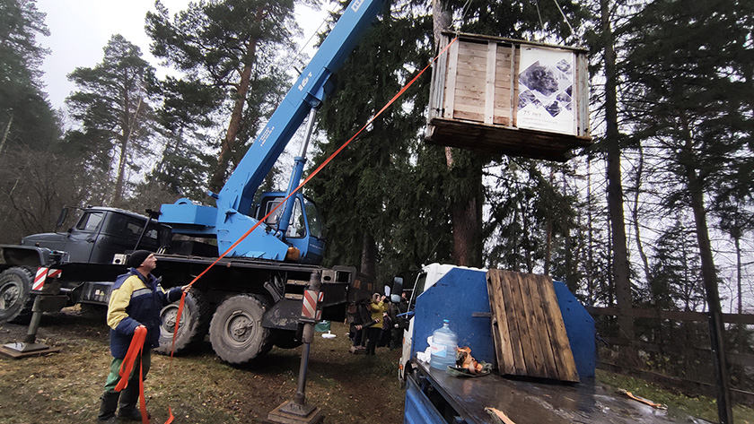 – Главная болезнь животных, содержащихся в неволе, – ожирение. Этот вольер построен удачно – есть склон, по которому ей придется ходить. Мы все, и зубры тоже, ленивы от природы. Здесь, чтобы поесть, ей надо будет подняться, чтобы попить – спуститься. На участке есть и кусочек луга, на котором она может попастись, кусочек пойменного леса, дикие яблони, плодами которых так любят лакомиться зубры. Есть небольшое озерцо с грязью, чтобы валяться в нем осенью для защиты от гнуса. Мы специально выбирали участок с максимальным разнообразием условий, – рассказал главный по зубрам Александр Рогуленко, заместитель директора по научной работе национального парка.