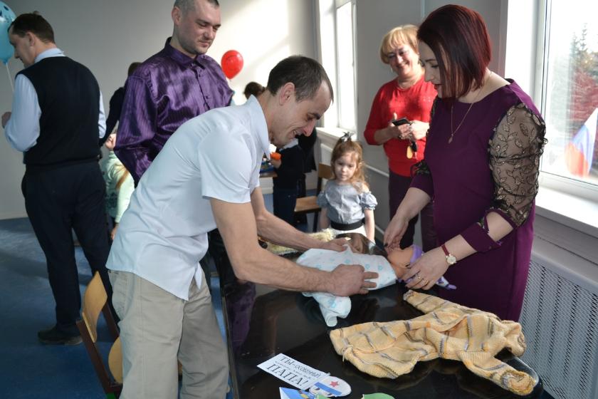 Дети с готовностью принимают участие и в ставшем традиционным фестивале отцов, который проводится в честь Дня защитника Отечества. Младшие члены семьи выступают одной командой со своими папами и видят, что настоящий мужчина должен уметь не только разбирать-собирать автомат, работать с металлом и деревом, но и пеленать ребенка. Потому что только забота о детях делает мужчину отцом.